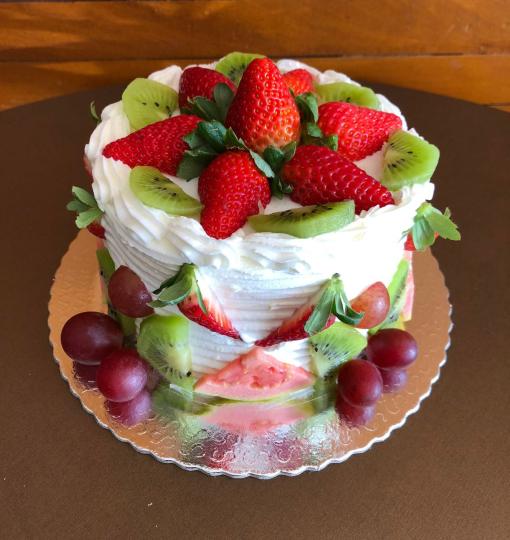 Massa branca, recheado com duas camadas de chantilly fresco, morango, kiwi e manga, coberto com chantilly fresco e decorado com carambola, morango, goiaba e uva. O açúcar é substituído pelo adoçante culinário sem açúcar, tanto na massa, como no chantilly. Contém somente o açúcar natural das frutas.